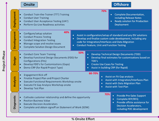 We follow Sure Steps Methodology for Onsite Offshore Work Split for Microsoft Dynamics Products Implementations